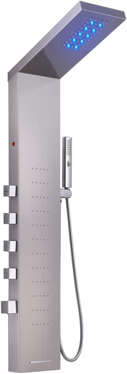 Professional reviews from industry experts LED Shower Panel Tower, Rainfall Shower Head with Rain Massage Body Jets, Simultaneous Shower System, Brushed Nickel